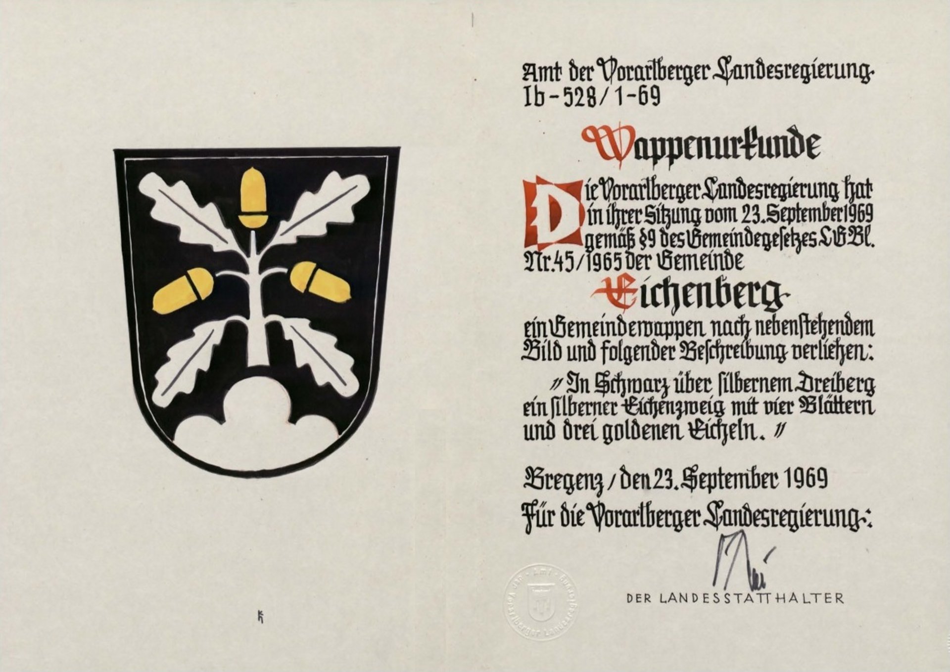 Die Wappenurkunde zur Verleihung ist auf den 23. September 1969 ausgestellt.37. Sennereigenossenschaften Hinteregg und Lutzenreute, Eichenberg Die Sennerei Lutzenreute verarbeitet als Sennereigenossenschaft unbehandelte, silofreie Heumilch zu Bergkäse. Auch die Sennereigenossenschaft Jungholz-Hinteregg hat sich auf die Verarbeitung von Heumilch zu Bergkäse spezialisiert. Dieser wird meist direkt über die Bergsennerei oder auf den Wochenmärkten in Bregenz und Wolfurt verkauft.