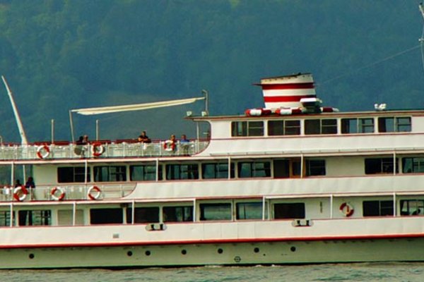 1990 Es fährt wieder ein Schiff mit dem Namen Stadt Bregenz auf dem Bodensee.