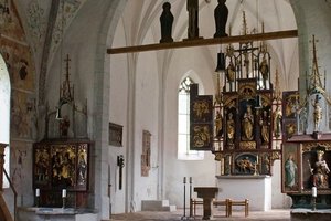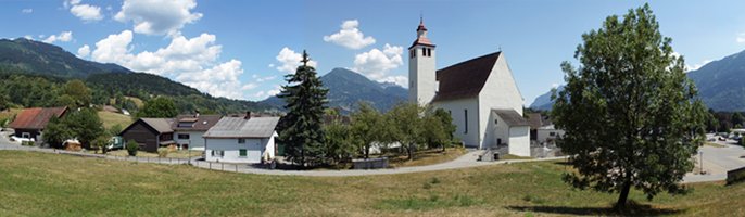 Erwähnenswert ist die Orgel, die in Bauweise und Klang französischen Einfluss aufweist. Sie stellt ein begehrtes Instrument für Orgelkonzerte dar.St. Martinskapelle (Ludesch) Die alte Pfarrkirche St. Martin ist das Wahrzeichen der Gemeinde Ludesch. Die erstmalig 830 erwähnte Kirche steht auf einer Anhöhe. Der größte spätgotische Flügelaltar des Landes zeigt ein Halbrelief von St. Martin und dem Bettler sowie Teile des Passionsgeschehens in vier Bildern.